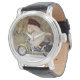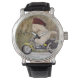 Uhr, Vintage Männeruhr mit schwarzem Lederarmband