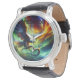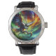 Uhr, Vintage Männeruhr mit schwarzem Lederarmband