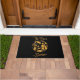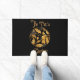 Die Katze guckt unter schönem goldgelbem Blattwerk hervor.Lass jedem weiß, dass dies der Katzengarten ist.