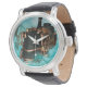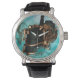 Uhr, Vintage Männeruhr mit schwarzem Lederarmband