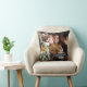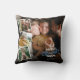 Modernes Tageskissen mit 4 Familienbildern, die Sie durch Ihr eigenes ersetzen können, das niedliche Sprichwort "der weltgrößte Papa", das blaue Herz und Ihre Namen.