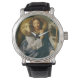 Uhr, Vintage Männeruhr mit schwarzem Lederarmband