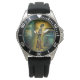Uhr, Vintage Männeruhr mit schwarzem Lederarmband