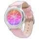 Kinderuhr aus Edelstahl mit rosa Lederarmband