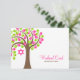 Eine schicke und stilvolle Tree of Life-Themed Bat Mitzvah Umschließkarte. In Rosa, Grün und Braun dargestellt. Persönlich für Ihre Veranstaltung.