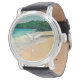 Uhr, Vintage Männeruhr mit schwarzem Lederarmband
