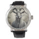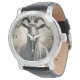 Uhr, Vintage Männeruhr mit schwarzem Lederarmband