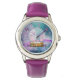 Uhr, Kinderuhr aus Edelstahluhr mit lila Lederarmband