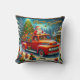 Der Weihnachtsmann fährt einen Vintagen LKW mit Geschenkartikeln, umgeben von einer festlichen Szene schneebedeckter Bäume, Kinder und Feiertagssjubeln.