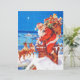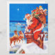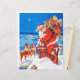 Der Weihnachtsmann und sein Rentier auf dem schneebedeckten Dach der Nacht vor Weihnachten.