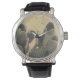 Uhr, Vintage Männeruhr mit schwarzem Lederarmband