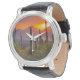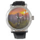 Uhr, Vintage Männeruhr mit schwarzem Lederarmband
