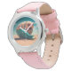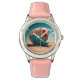 Kinderuhr aus Edelstahl mit rosa Lederarmband