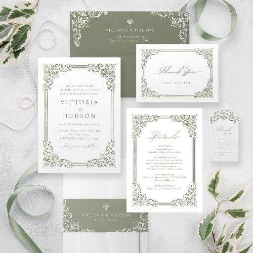 Sage Green Vintage Frame Elegant Script WeddingDesignt von Fran Z