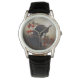 Uhr, Vintage Männeruhr mit schwarzem Lederarmband