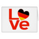Rote Buchstaben lesen "LIEBE" mit einer herzförmigen deutschen Flagge für das "O". Spaß zu jeder Zeit, aber besonders am Valentinstag. Ein guter Weg, um Ihnen die Liebe Ihrer Kultur, Ihres Erbes und Ihrer Herkunft zu teilen.