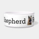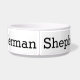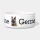 Diese fütternd Schüssel wurde für Ihren deutschen Schäferhund (auch Alsationshund genannt) entworfen. Es hat zwei nahe Fotos eines deutschen Schäferhundes und kann mit dem Namen Ihres Haustieres personalisiert sein. Auf der Rückseite steht geschrieben: Deutscher Hirte.