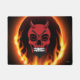 Red Devil Skelett mit Feuer- und Flammenhintergrund. Fügen Sie Text hinzu oder passen Sie die Größe Ihrer Begrüßungsmatte des Teufels-Dämons an.
