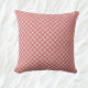 Diagonale Linien schaffen ein Kreuz-Diamantenmuster, das auf der Vorderseite dieses Kissens schick und trendig aussieht. Auf der Rückseite dieses dekorativen Kissengewölbes befindet sich ein hübscher, korallenroter, massiver Farbblock.