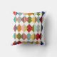 Dieses Kissen hat ein Bauhaus-Design von überlappenden Diamanten in Retrofarben.