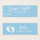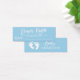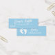 Schöne, moderne, blau-weiße Lotterien in modernem Pinselstrichskript in hellpastellblau. Niedliche Babyfüße - Personalisieren Sie sie, indem sie den Namen des Babys im Rücken hinzufügen. Fügen Sie diese zu Ihren Einladungen, günstige Preis für Menge 100, perfekte Größe 3"x 1". Ideal für Babydusche mit Party. Entspricht allen Blautönen.