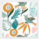 Dicke Abstrakte tropische Vögel und florales Muste Tapete