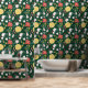 Entspannen Sie in der Innendekoration mit unserer beeindruckenden und lebendigen Blumenblüte botanische Gartenmuster Schale und Tapete mit Stock. Dieses edle Tapete mit einer Reihe von fett-roten, goldgelben und hellrosa Blüten und üppigen Blattpflanzen ist das Set vor einem dunkelgrünen Hintergrund. Dieses Tapete wurde entworfen, um die Schönheit und den Reichtum eines botanischen Gartens in Ihre Zuhause zu bringen. Es ist faszinierend und praktisch zugleich. Original Blumenarbeit und Design von Moodthology Papery.