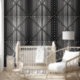 Holen Sie sich dieses graue gestreifte Tapete mit Ketten in einem Kreuz-Muster, um eine fette Darstellung im Raum zu machen