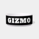 Moderner schwarzer Hund füttre Schüssel mit dem Namen Ihres Haustieres in Weiß.
