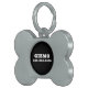 Modernes Hund-ID-Tag mit schwarzem Hintergrund, personalisiert mit dem Namen Ihres Tieres in einem fett weißen Schriftart und einer Telefonnummer oder einer beliebigen benutzerdefinierten Nachricht darunter. Wenn Ihr Text abgeschnitten ist, klicken Sie bitte auf die Schaltfläche, um das Design zu bearbeiten und den Schriftart zu verkleinern.