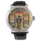 Uhr, Vintage Männeruhr mit schwarzem Lederarmband