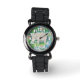 Der sanfte Riese des Dschungels in einem Tableau mit Krokodil, Affe, Schmetterling und Wasserfall. Glitzer-Uhrenriemen in Rot, Rosa oder Silber.