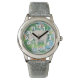 Der sanfte Riese des Dschungels in einem Tableau mit Krokodil, Affe, Schmetterling und Wasserfall. Glitzer-Uhrenriemen in Rot, Rosa oder Silber.