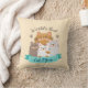 Adorable braune, graue und weiße Katzen-Illustration mit Band, Pfoten, beige gepunkteter Hintergrund und Text "Weltbeste Katze-Mama" auf Kissen werfen.