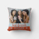 Dieses trendige und stilvolle Kissen verfügt über zwei Fotos von Ihnen und Ihren besten Freunden. Moderne Farbblöcke in Weich, Blau und Rot Orange, passende handgeschriebene Schrift-Typografie und niedliche Kreide.
