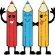 Dieser farbenfrohe und lustige Stift verfügt über drei farbige Stifte mit Armen, Beinen und lustigen Gesichtern auf einem gestreiften Boden. Im weißen Feld können Sie Ihren Namen oder Ihre eigene Nachricht schreiben.