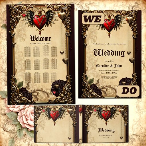 Die Eleganz und Mystik des gotischen Herzens. Das Design besticht durch einen imposanten, verzierten goldenen Rahmen, der mit verzierten Schnörkeln und Blumenmotiven geschmückt ist. Dieser opulente Rahmen verleiht dem Design eine majestätische und dennoch mystische Atmosphäre. Ein pulsierendes rotes Herz schweben oben, gerahmt von goldenen Flügeln und gekrönt mit einer eleganten Krone - ein Symbol für Liebe, Leidenschaft und Majestät. Das gotische Herz selbst ist mit aufwändigen Details geschmückt und beherbergt einen rubinroten Edelstein, der dem Design eine Touch von Luxus und Geheimnis verleiht.