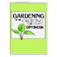 Der Entwurf hat ein computergesteuertes Zeichnen eines Sämlings in der Ecke, und das Schreiben in verschiedenen Schriftart, die "die Gartenarbeit liest, ist eine Übung im Optimismus".