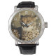 Schönes Foto in der Nähe eines ruhigen Geparden Armbanduhr mit Zahlen.
