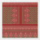 Das Design scheint ein traditionelles Textildesign zu sein. Es weist ein symmetrisches Muster mit einer zentralen Säule und auf jeder Seite komplexe Ränder auf. Die Farbpalette umfasst erdige Farbtöne wie Rot und Braun, mit detaillierten Motiven in Weiß und Beige. Die Muster bestehen aus geometrischen Formen, diamantähnlichen Figuren und dekorativen Elementen, die Blumendesigns ähneln. Diese Art des Designs wird oft mit kultureller Kunst und Handwerk assoziiert und zeigt die Fähigkeiten, die erforderlich sind, um so detaillierte und komplexe Muster zu schaffen. Es könnte Teil eines Teppichs sein, eines Kleidungsstücks, oder eines anderen Textilerzeugnisses.