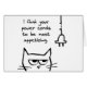 Diese Schnur befestigt zu Ihrem Laptop? Köstlich. Die Schnüre, die herauf Ihren Handy und iPod aufladen? Köstlich. Sie hatten keine Ahnung, wie unwiderstehliche Schnüre waren, bis verärgerte Katze durch sie kaute. Er verspottet Ihre Versuche, ihm zu abraten. Dieses bittere Material, das Sie auf sie sprühten? Netter Versuch. Die perfekte Karte für Katzeninhaber, Katzenliebhaber, techies, Computer-Aussenseiter und jedermann, der sogar jemand weiß, das Katzen hat! Sie können mehr meiner verärgerten Katzenentwürfe in meinem Zazzle Geschäft hier sehen: http://www.zazzle.com/funkychicdesigns