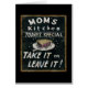 © Pela Studio/wildes Apple. Ein Retro Schwarzweiss-Zeichen, das ein Zitat über die Küche der Mammas kennzeichnet. Heutiger Special ist nehmen sie oder verlassen sie!