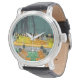 Uhr, Vintage Männeruhr mit schwarzem Lederarmband