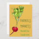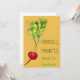 Eine Einladung, die als Flyer für einen Bauernmarkt genutzt werden könnte. Aus einer originalen Aquarellbildermalerei der Künstlerin Sacha Grossel. Diese bunte und lebendige Gemüseserie zeichne sicherlich einer Menschenmenge. Es zeigt eine Bio Rot- und Grünplatte im Genre der Obst- und Gemüsekunst.