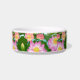 Ursprüngliches Kunstmuster von elegantem rosa Lotus blüht durch Künstler Carolyn McFann zwei des schnurrenden Katzen-Studios, das auf einem Qualitäts-Katzenfutterteller gedruckt wird.