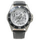Herrenuhr aus Edelstahl mit schwarzem Lederarmband