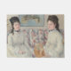 Dieses Design zeigt ein Gemälde des französischen Impressionisten Berthe Morisot (1841-1895). Es zeigt zwei elegante Schwestern, die auf einem Sofa sitzen. Beide Schwestern sehen sich ähnlich: Sie haben ähnliche brünette Frisuren und beide tragen weiße Kleider mit blauen Punkten. Sie tragen schwarze Halsketten im Choker-Stil. Die Damen sind in einem eleganten Wohnzimmer. Die Schwester auf der rechten Seite hält einen Ventilator in der Hand. Das Originalwerk wurde 1869 von Berthe Morisot gemalt.