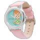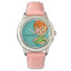 Kinderuhr aus Edelstahl mit rosa Lederarmband