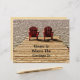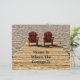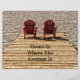 Adirondack Stühle lakehouse Möbel Design Zitate und Phrasen. Rustikal braun bordeauxfarbene, moderne, schicke, trendige Strandhausstühle auf einem Dock-Foto. Dieses 110lb-Papier kann für Ihr Foto-Album, Handwerk oder decoupage Projekte verwendet werden, die schwerere Papier erfordern. Ideal für den Ruhestand an der Hütte. Phrase 'Zuhause ist, wo die Hütte ist'. Passen Sie Ihren Text nach Schriftart, Stil, Farbe oder Entfernung an, falls gewünscht. Bildrecht Marg Seregelyi Fotografie.