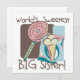 Die süßeste Großschwester der Welt verdient einen T - Shirt, einen Knopf, eine Tasche, eine Tasse, eine Karte, ein Kissen oder einen anderen Gegenstand, der ihr lasse, dass ihr wisst, dass sie die Beste ist! Unsere süßesten Big Sister T - Shirt und andere große Geschenke und Kleidungsstücke der Welt zeichnen sich durch ein niedliches Retro-Design mit einem riesigen Lollipop und einer Eiscreme aus! Süß!